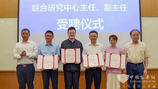 中國科學院院士馬余剛(左一)、褚君浩(右一)為聯(lián)合研究中心負責人頒發(fā)聘書