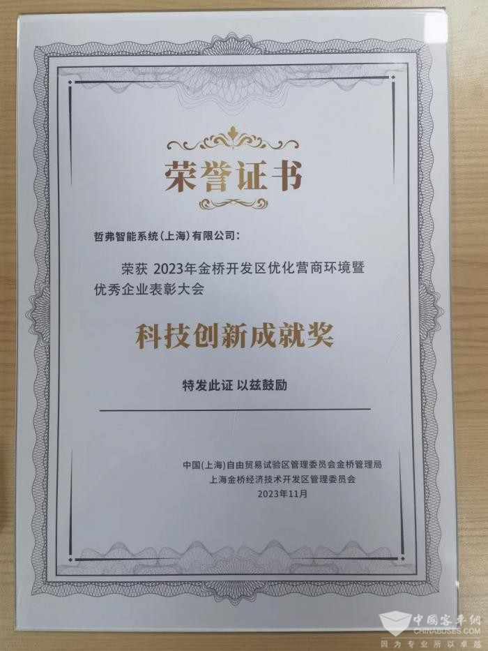 2023年11月28日,2023年金橋開(kāi)發(fā)區(qū)優(yōu)化營(yíng)商環(huán)境暨優(yōu)秀企業(yè)表彰大會(huì)隆重舉行。哲弗智能系統(tǒng)(上海)有限公司憑借其在鋰電池?zé)岚踩I(lǐng)域的卓越貢獻(xiàn)榮獲“科技創(chuàng)新成就獎(jiǎng)”,繼9月份榮獲“2022年度浦東新區(qū)創(chuàng)新創(chuàng)業(yè)獎(jiǎng)”后,再獲嘉獎(jiǎng)。
