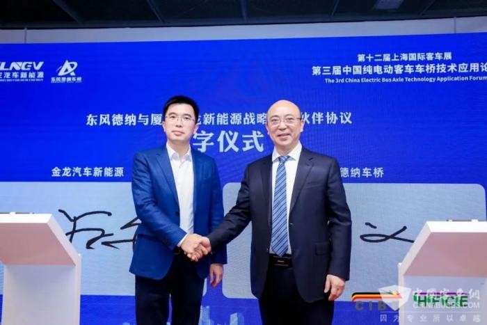 廈門(mén)金龍汽車(chē)新能源科技有限公司董事長(zhǎng)王學(xué)舟和東風(fēng)德納車(chē)橋有限公司黨委書(shū)記馮義,簽訂戰(zhàn)略合作伙伴協(xié)議。