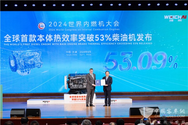 2024年4月20日,2024年世界內(nèi)燃機(jī)大會(huì)上,中國(guó)內(nèi)燃機(jī)學(xué)會(huì)副理事長(zhǎng)、內(nèi)燃機(jī)與動(dòng)力系統(tǒng)全國(guó)重點(diǎn)實(shí)驗(yàn)室主任、濰柴動(dòng)力董事長(zhǎng)譚旭光鄭重宣布:濰柴推出全球首款達(dá)到53.09%熱效率的柴油機(jī),這是濰柴第四突破柴油機(jī)熱效率極限,再一次讓世界內(nèi)燃機(jī)行業(yè)刮目相看。