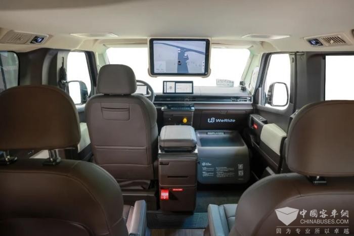 文遠知行GXR擁有5,018mm超長車長、1,340mm車廂凈高以及3,100mm超長軸距,并首創(chuàng)取消副駕駛位,將前排空間更多釋放給乘客,達成Robotaxi領域最佳“得房率”。二排有效腿部空間超0.5米,三排有效腿部空間超0.4米,充分滿足每位乘客的伸展自由。