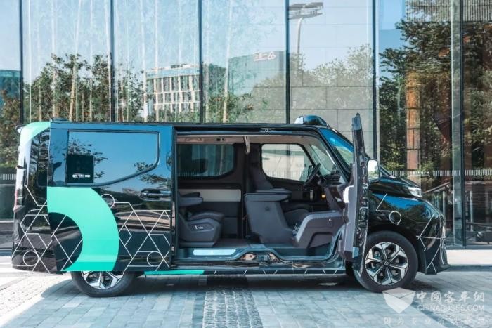 文遠知行GXR全球首創(chuàng)隱藏式B柱設計,前車門和側滑門可同時開啟,最大開啟空間寬達1,831mm,高達1,285mm,形成超大門洞,乘客可輕松上下車。