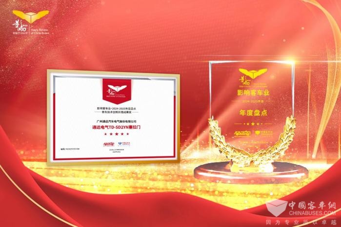 2025年1月8日,“第十九屆影響客車業(yè)年度盤點(diǎn),新質(zhì)生產(chǎn)力創(chuàng)新發(fā)展論壇暨公交客車科技交流”活動(dòng)在河南鄭州成功舉辦。這場(chǎng)盛會(huì)匯聚了來自客車制造、技術(shù)配套、公交客運(yùn)等各界的精英代表,共同盤點(diǎn)過去一年的行業(yè)發(fā)展成果,展望未來的技術(shù)趨勢(shì)。在這個(gè)重要的時(shí)刻,通達(dá)電氣憑借其TD-SD2YN塞拉門產(chǎn)品,成功斬獲“客車技術(shù)創(chuàng)新應(yīng)用成果獎(jiǎng)”。