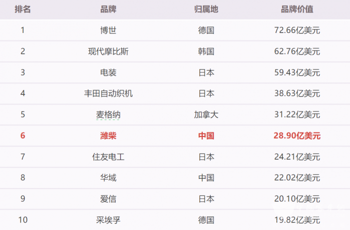 2025 全球汽車零部件品牌價(jià)值榜單出爐 濰柴實(shí)力上榜