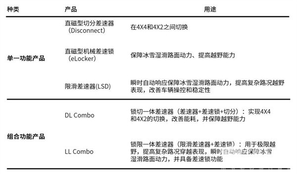 所有組合功能產品的封裝尺寸和機械接口均可與傳統(tǒng)開放式差速器或單一功能產品保持一致,整車廠無需更改驅動軸或安裝方式,即可提供常規(guī)、斷開、鎖止和各種組合等不同驅動模式。其中DL Combo鎖切一體差速器,作為組合功能系列的首推產品,是全球首款集差速、切分與鎖止功能于一身的產品。