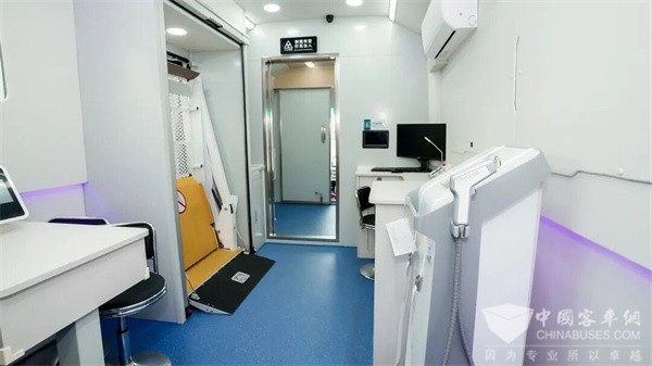 該智慧醫(yī)療車集成了五大核心功能模塊:詢診區(qū)、DR檢查室、體能檢查區(qū)、治療區(qū)及多功能檢查室。其核心亮點(diǎn)在于搭載了高性能車載DR系統(tǒng),并采用全密閉電磁屏蔽與全包圍鉛板設(shè)計,確保輻射安全完全符合嚴(yán)苛的車載醫(yī)療標(biāo)準(zhǔn),可在移動環(huán)境中實(shí)現(xiàn)快速、清晰的影像學(xué)檢查。