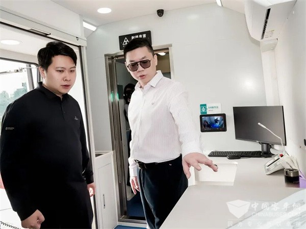 同時,車輛配備了智能中控一體化系統(tǒng),通過觸摸屏即可全局操控環(huán)境照明、空調(diào)、消毒及通訊等子系統(tǒng),還可進(jìn)行語音交互控制,極大提升了醫(yī)療團(tuán)隊(duì)的工作效率與操作便捷性。這使其不僅能完成常規(guī)檢查與初步診斷,更能現(xiàn)場開展應(yīng)急治療與康復(fù)指導(dǎo)。該車輛也搭載了通達(dá)電氣通道燈、風(fēng)道、踏步燈、發(fā)光防護(hù)欄等自研產(chǎn)品,定制化空間布局設(shè)計,也極大提升了車輛美觀性和適用性。