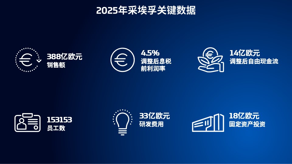 調(diào)整后息稅前利潤17億歐元(2024年:15億歐元),對(duì)應(yīng)調(diào)整后息稅前利潤率4.5%(2024年:3.5%);剔除并購影響,調(diào)整后自由現(xiàn)金流14億歐元(2024年:3.05億歐元)。