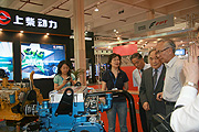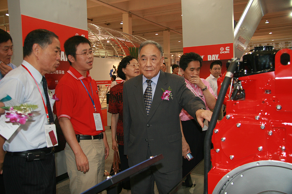 | 何光遠到東風康明斯展臺觀看柴油機 |