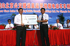 | 9月3日,德國ZF集團向北京公交公司捐贈電動車低地板車橋儀式在北京公交公司總部隆重舉行。儀式上,德國采埃孚集團向北京公交公司贈送了50套2008奧運會電動車用低地板車橋。采埃孚集團副總裁、亞太區(qū)主席Manfred