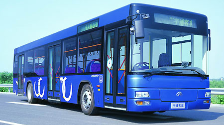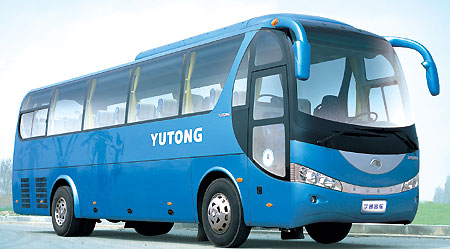ZK6100H系列車型是宇通公司2004年6月份推出的自主開(kāi)發(fā)新產(chǎn)品,擁有多項(xiàng)自主產(chǎn)權(quán)。至今已銷售1400余輛,并出口多個(gè)國(guó)家,創(chuàng)造客車年銷售新紀(jì)錄,牢牢占據(jù)了國(guó)內(nèi)10.5米客車市場(chǎng)頭把交椅,已成為多個(gè)廠家爭(zhēng)相效仿的車型。 ZK6100H系列車型造型新穎,內(nèi)飾豪華,底盤性能可靠,全新演繹10米客車新概念。經(jīng)過(guò)宇通公司技術(shù)專家組精細(xì)設(shè)計(jì),造型大方、協(xié)調(diào);全新開(kāi)發(fā)空調(diào)與整車融為一體,美觀又有效降低風(fēng)阻;專利豪華電動(dòng)兔耳后視鏡,與整車造型協(xié)調(diào)一致,擴(kuò)大駕駛員后視野;全新的組合式前后大燈以及別具匠心的前后裝飾燈帶,全新開(kāi)發(fā)轎車化后牌照燈,成為城市之夜的流動(dòng)風(fēng)景;淺灰白色及天藍(lán)色內(nèi)飾基調(diào),充滿溫馨感;灰色地板革、藍(lán)色碎花座椅、淺藍(lán)色風(fēng)道,相互輝映;下深頂淺,穩(wěn)重感強(qiáng)。 配備濰柴TBD226B-6IIC 、玉柴YC6A240-20、康明斯C245、五十鈴6HE1、康明斯ISBE250 30、錫柴CA6DF2-22/26等發(fā)動(dòng)機(jī),動(dòng)力強(qiáng)勁,等速百公里油耗21.5L,超強(qiáng)經(jīng)濟(jì)省油;十孔輪輞襄樊153前橋,9.5噸加寬后橋,加強(qiáng)型主減,精磨齒,加寬前后橋剎車蹄片,ABS+自調(diào)臂+緩速器,大大提高了整車安全性;全新六氣囊懸架,橫向穩(wěn)定桿、筒式減震器結(jié)構(gòu),充分考慮公路及旅游路況的復(fù)雜性,兼顧舒適性和穩(wěn)定性;底盤關(guān)鍵件全部采用國(guó)內(nèi)外優(yōu)質(zhì)成熟總成,加之宇通公司精心匹配設(shè)計(jì),性能超強(qiáng),穩(wěn)定可靠,已經(jīng)成為機(jī)關(guān)團(tuán)體、客運(yùn)市場(chǎng)、旅游公司的首選車型。 參展車型:宇通ZK6128HG-3