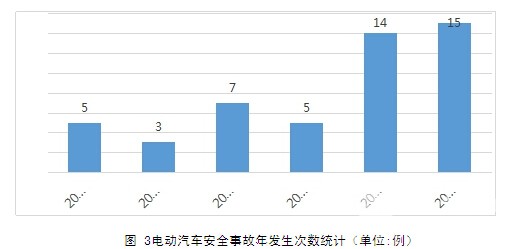 圖 3電動(dòng)汽車安全事故年發(fā)生次數(shù)統(tǒng)計(jì)(單位:例) 6