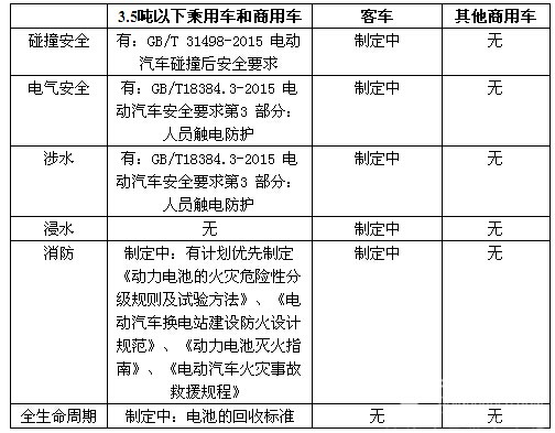 目前出臺(tái)GB/T18384-2015標(biāo)準(zhǔn)適用于3.5噸以下的電動(dòng)乘用車或電動(dòng)商用車,整車層面針對(duì)電動(dòng)汽車動(dòng)力系統(tǒng)所提出的安全通則,包括:車載可充電儲(chǔ)能系統(tǒng)、操作安全和故障防護(hù)、人員觸電防護(hù)3部分,更側(cè)重于針對(duì)電能和電磁能的安全規(guī)范和故障保護(hù)。
