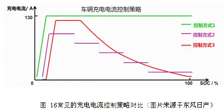 圖 16常見的充電電流控制策略對(duì)比(圖片來(lái)源于東風(fēng)日產(chǎn)) 21