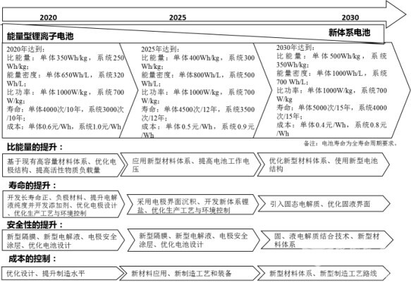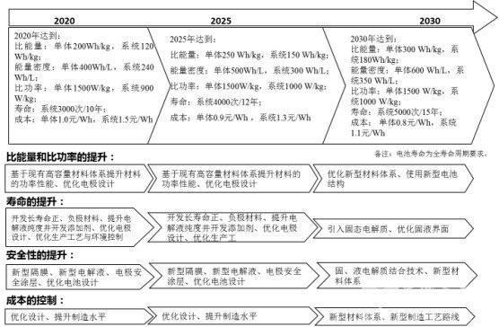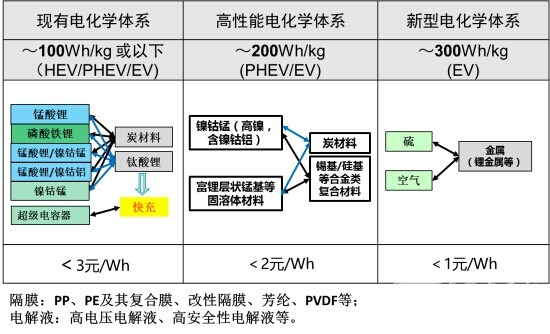 能量型動(dòng)力電池(EV用動(dòng)力電池)主要技術(shù)目標(biāo)要求