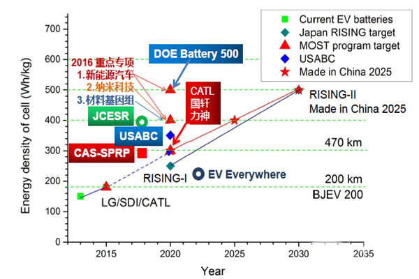 中國(guó)科學(xué)院在2013年11月布局了一個(gè)戰(zhàn)略先導(dǎo)項(xiàng)目,希望能基于納米技術(shù),研究開(kāi)發(fā)一些能夠?qū)嶋H應(yīng)用的先進(jìn)材料和電池技術(shù),目標(biāo)是300 Wh/kg,明年6月份所有的材料要進(jìn)入到量產(chǎn)的階段。