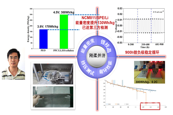 基于剛?cè)岵?jì)的設(shè)計(jì)思想,青島生物能源所的崔光磊團(tuán)隊(duì)開(kāi)發(fā)了聚丙烯碳酸酯、纖維素、鋰鑭鋯氧復(fù)合的固體電解質(zhì),研發(fā)的電池能量密度達(dá)到了300Wh/kg,并首次在馬里亞納海溝完成了深海測(cè)試。