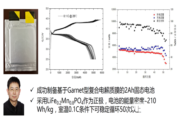 上海硅酸鹽研究所的郭向欣團(tuán)隊(duì),開(kāi)發(fā)了聚環(huán)氧乙烷、鋰鑭鋯氧復(fù)合的固體電解質(zhì),并研制了2Ah級(jí)的固態(tài)鋰離子電池。