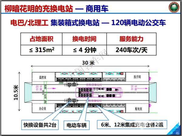 因此,孫逢春教授提倡充電站要小型化。比如集裝箱式的充換電站,幾百平米的充電站就解決原來(lái)是5000平米建站需求,奧運(yùn)會(huì)5000平米的充換電現(xiàn)在在315平米就解決掉,我國(guó)出口波蘭的就是集裝箱模式?,F(xiàn)在120平米的換電站可以服務(wù)120輛電動(dòng)出租車,1000私家車。
