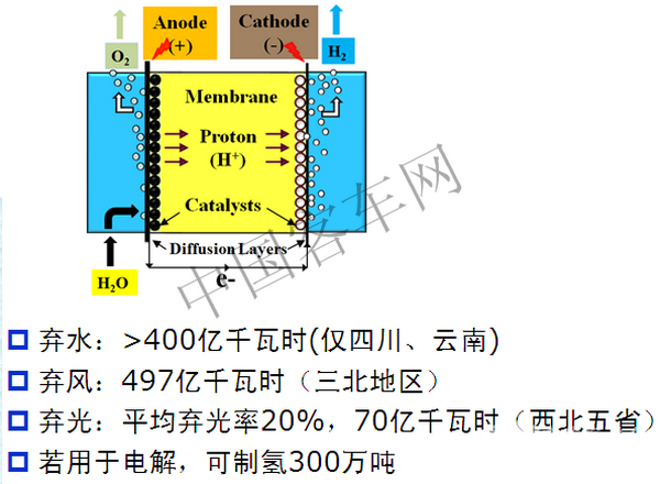眾所周知,我國可再生能源發(fā)展非常快,導(dǎo)致目前國內(nèi)棄風,棄光,棄水現(xiàn)象嚴重,2016年,僅僅四川、云南兩省棄水超過400億千瓦時;三北地區(qū)棄風達497億千瓦時;西北五省平均棄光率20%,約為70億千瓦時,這些能源如果用于電解,可制氫達300萬噸。