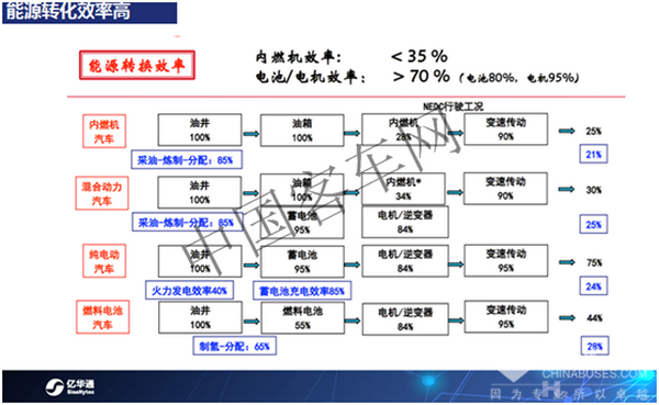 提高效率是任何技術(shù)發(fā)展的必然方向,實際上從內(nèi)燃機到混合動力到純電動到燃料電池,走的正是提高效率的過程。