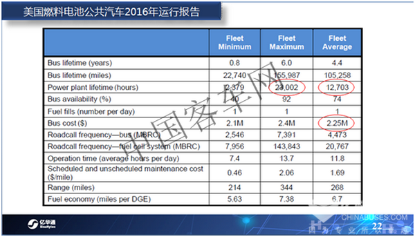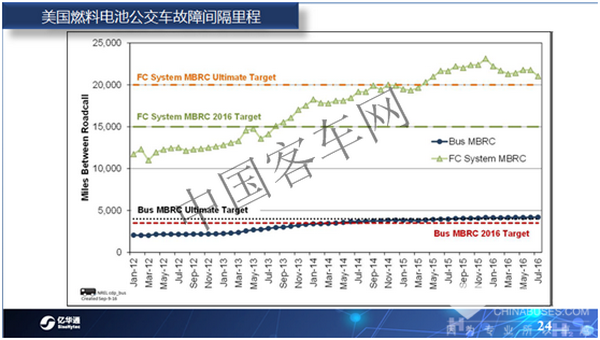 據(jù)客車網(wǎng)了解,業(yè)界用來衡量車輛可靠性的一個重要指標叫平均故障里程。從美國燃料電池客車實際運營的情況來看,燃料電池客車的平均故障里程的指標已經(jīng)非常接近DOE終極指標,其可靠性也高于整車的可靠性。