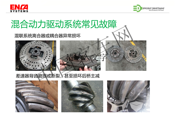 總結(jié)一下我們目前經(jīng)常遇到的混合動(dòng)力車一些故障情況,比如說混聯(lián)系統(tǒng)耦合器的損壞,根據(jù)一些客戶的反應(yīng),有的情況下這個(gè)耦合器在半年或者3個(gè)月就可以更換一次,還有一個(gè)就是差速器磨損、破裂甚至是損壞等等,所有的這些都是因?yàn)閯?dòng)力源的切換沖擊沒有消除,控制策略沒有做好,所有這些都會(huì)影響到這個(gè)車輛駕駛中的舒適性、可靠性。