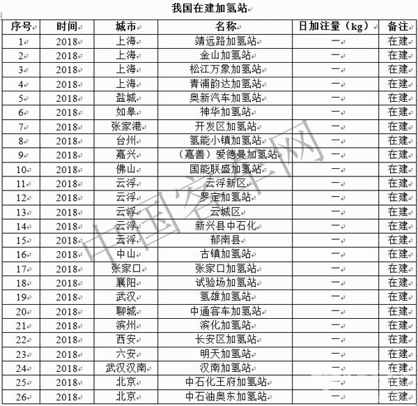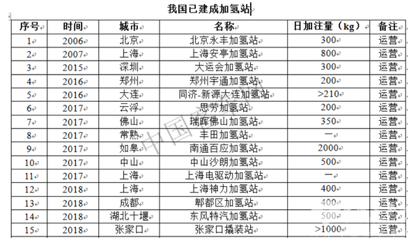 據(jù)內(nèi)部統(tǒng)計資料顯示,截止2018年2月份,我國已建成、在用及在建的加氫站共有33座;截止2018年7月份,我國已建成、在用及在建的加氫站共有41座,分別位于北京、上海、江蘇、大連、安徽、河南、廣東、成都等地,全國各地很多城市也都正在規(guī)劃建設(shè)加氫站。