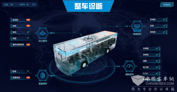 方案具備在線診斷功能,集成電機(jī)、電池、電控、DCDC、空調(diào)、胎壓、底盤等在線故障診斷和報(bào)警,能夠及時(shí)發(fā)現(xiàn)車輛故障。系統(tǒng)搭配漢納森車聯(lián)網(wǎng)大數(shù)據(jù)平臺(tái),還可支持遠(yuǎn)程車輛診斷功能,一鍵下發(fā)檢測指令,知悉每輛車健康狀態(tài)。