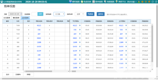實(shí)時(shí)掌握班次運(yùn)營(yíng)情況,包括早高峰、平峰和晚高峰班次的統(tǒng)計(jì)。另外分別對(duì)發(fā)車準(zhǔn)點(diǎn)率、大間隔和串車指標(biāo)進(jìn)行實(shí)時(shí)核算并展示,異常情況可以及時(shí)提醒和車輛調(diào)度,便于對(duì)運(yùn)營(yíng)車輛的全面掌控,通過(guò)指標(biāo)并能控制車輛均衡運(yùn)行。