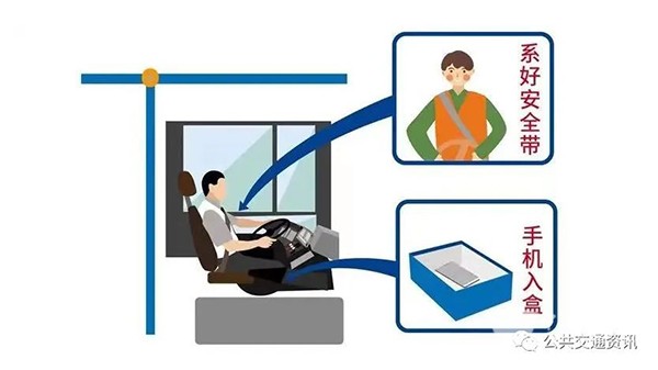 上車手機先入盒,再系安全帶,嚴(yán)守法規(guī)集中精力,保持良好心態(tài)、堅持中速行駛,不超速、不搶行、不超點,做到起步穩(wěn)、行車穩(wěn)、停車穩(wěn)。