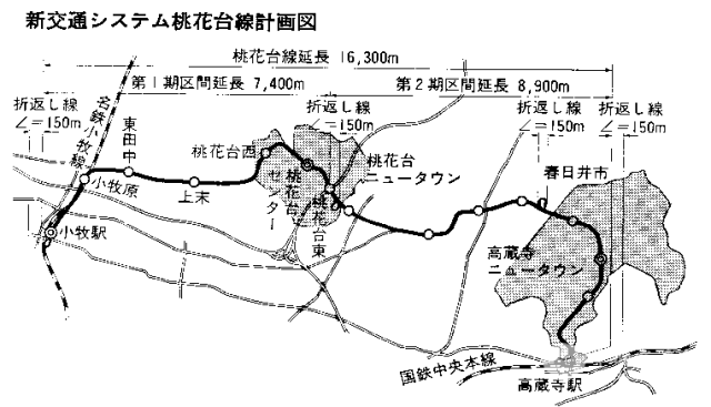 一是愛知縣小牧市內(nèi)的桃花臺線,連接小牧市中央的小牧站與東部的桃花臺新城,線路全長7.4公里,設(shè)站7座,采用膠輪自動導(dǎo)向軌道,于1991年3月25日開通運營,但桃花臺新城人口低于規(guī)劃,而且在2003年名古屋地鐵上飯?zhí)锞€開通之前,桃花臺線主要通過換乘名古屋鐵道小牧線,在上飯?zhí)镎鞠萝囃ㄟ^公共汽車前往平安通站換乘名古屋地鐵,出行非常不便,乘車人數(shù)遠(yuǎn)遠(yuǎn)低于預(yù)期,膠輪導(dǎo)軌AGT系統(tǒng)維護(hù)成本高,連年虧損,于2006年10月1日停止運營,2008年1月開始對原線路進(jìn)行拆除。