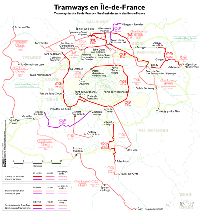 巴黎市近郊有軌電車布局圖巴黎有軌電車客流情況(2019年)