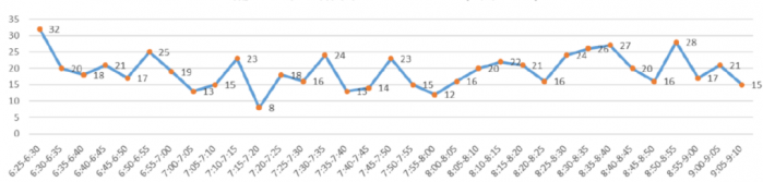 圖2 每5分鐘內站臺平均上下客時間(s)