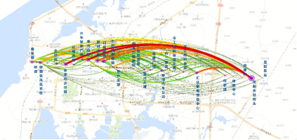 (2)案例應(yīng)用 通過分析線路的客流出行分布,如果客流具有集散方向集中、長(zhǎng)距離出行需求高的現(xiàn)象,相對(duì)比較適用大站運(yùn)營(yíng)的模式。如下圖所示線路,該線路具有明顯的幾處上客量較大的站點(diǎn),而這些站點(diǎn)之間又有明顯的出行聯(lián)系,通過結(jié)合站點(diǎn)上客量及OD對(duì)可以確定該線路具體的大站??空军c(diǎn)。 在具體的運(yùn)營(yíng)中,還需要根據(jù)具體客流情況,確定大站線路是高峰期間運(yùn)營(yíng),還是全天運(yùn)營(yíng)。