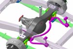 改進減振器布置方式,采用蝶閥型減振器,改善高速響應(yīng)性、控制低速衰減力,提高可靠性的同時改善駕乘舒適性。 |