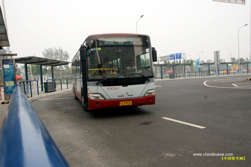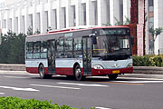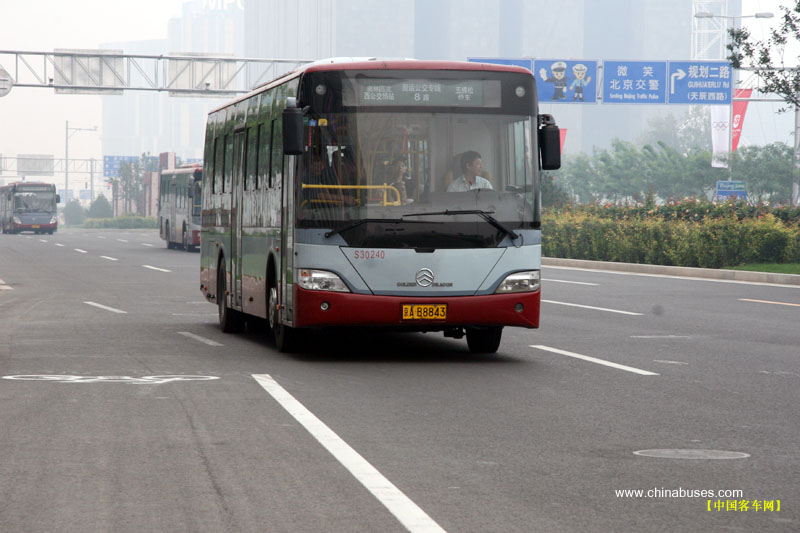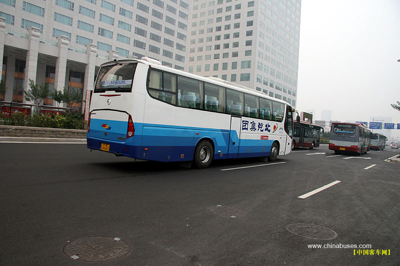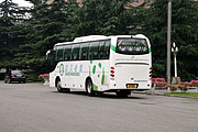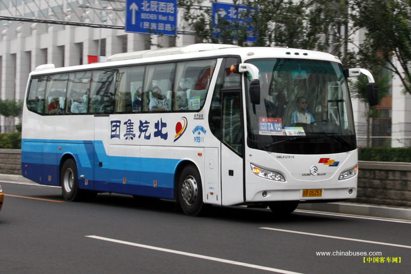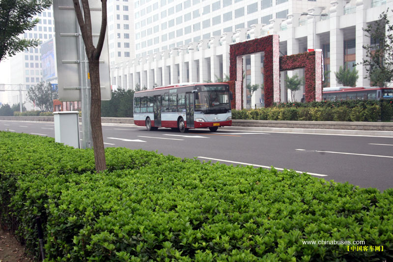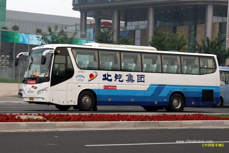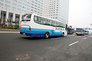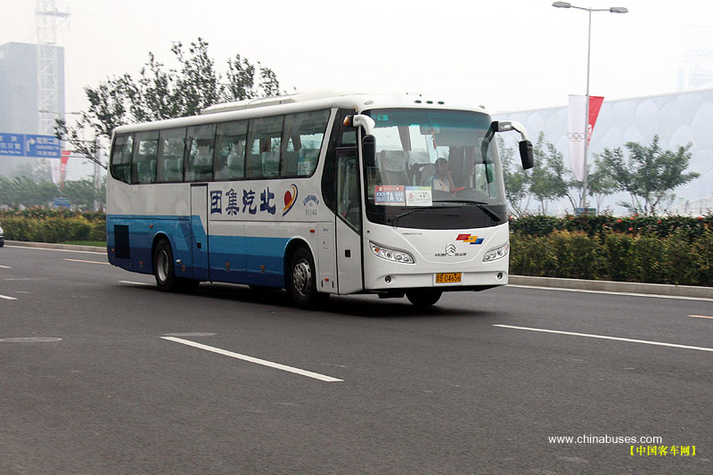 行駛在鳥巢附近金旅客車