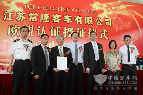 常隆客車榮膺中國(guó)首家獲歐盟整車認(rèn)證純電動(dòng)客車企業(yè)