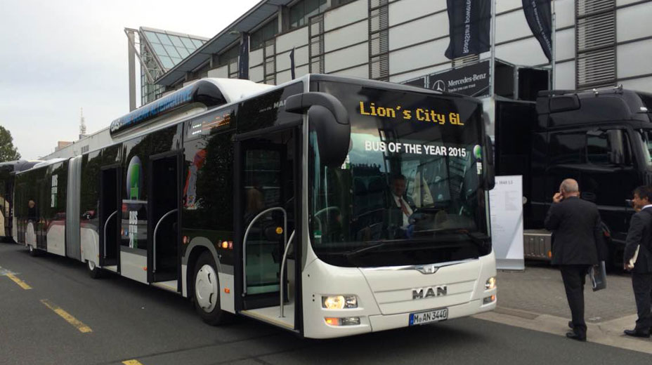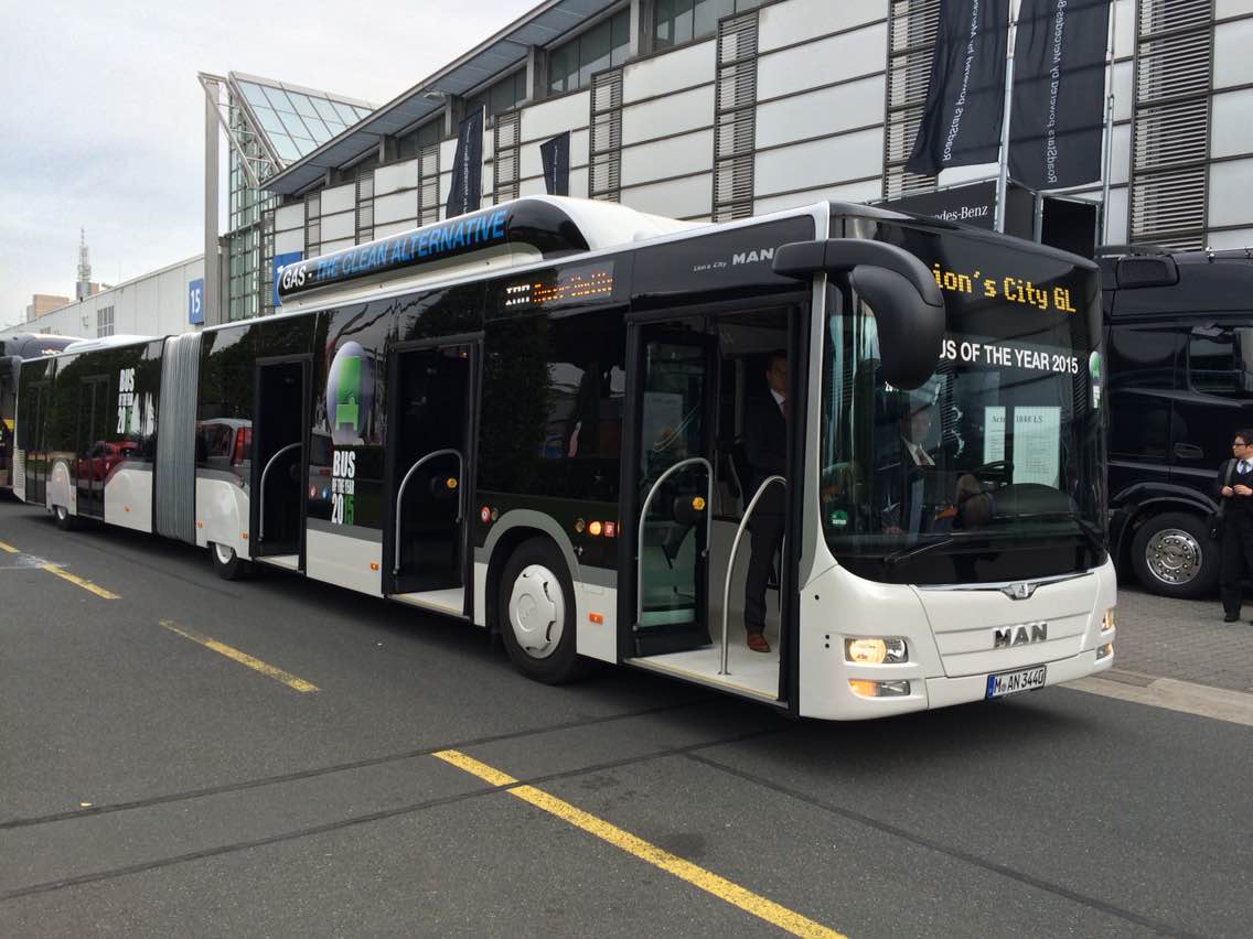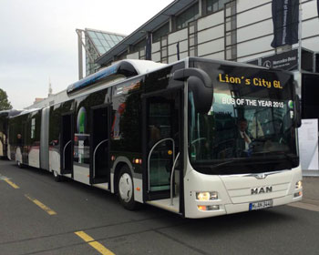 中國客車英文網(wǎng)[www.chinabuses.org]: 德國當?shù)貢r間23日晚上7點,第64屆IAA漢諾威商用車展開幕晚宴在漢諾威國際展覽中心拉開序幕。晚宴公布“2015年度巴士”大獎歸屬:來自德國曼Lion's City GL CNG鉸接式城市客車。18.75米的德國曼Lion's City GL天然氣驅動鉸接式城市客車全力以赴,成功問鼎“2015年度巴士”桂冠。 City GL主要適用于城市公交運輸,最多可承載142名乘客。該款客車的一個亮點在于,共有五組雙側車門,成為客車市場上的唯一 ...【詳細】