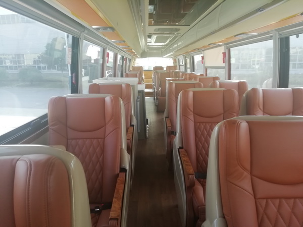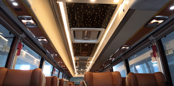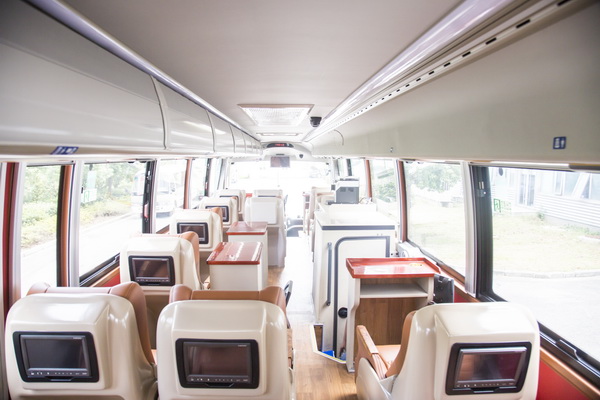 YBL6148H高端旅游客車給旅客更加舒適的乘坐體驗,整車配備商務(wù)豪華座椅和獨立影視系統(tǒng),讓旅途不再寂寞勞累;先進(jìn)的空氣凈化系統(tǒng),保證車內(nèi)空氣的優(yōu)良品質(zhì),讓旅客如沐春風(fēng);隱藏式遮陽簾,讓旅途中隨時享受陽光帶來的樂趣;配備航空式行李架,讓隨身行李更加有序,避免視線所及的雜亂,再加上星空頂?shù)牟季忠约蔼毺氐能噧?nèi)色彩搭配,使車內(nèi)環(huán)境更加溫馨、更加賞心悅目;車載獨立衛(wèi)生間、飲水機(jī)和冰箱等人性化配備,給旅客身處頭等艙的尊享體驗,享受更加愜意的美好時光。