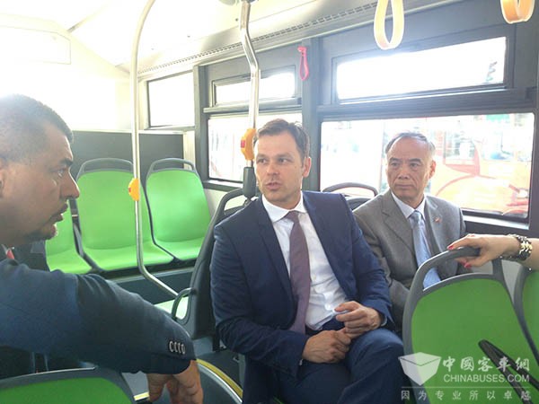 辛尼薩與李滿長(zhǎng)試乘蘇州金龍超級(jí)電容車