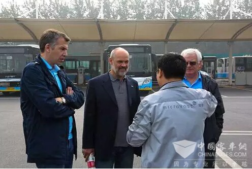 UITP主席Sergei KOROLKOV(左二)在小營公交場站聆聽微宏工作人員進(jìn)行講解