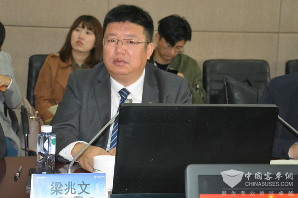 福田商用汽車集團(tuán)高級(jí)副總裁兼歐輝客車事業(yè)部黨委書記、總裁梁兆文主持會(huì)議