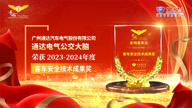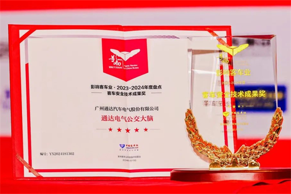 通達電氣公交大腦榮獲2023-2024年度“客車安全技術成果獎”