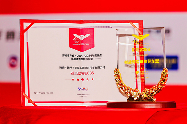 亞星歐睿E63S榮獲2023-2024年度“新能源客車推薦車型”