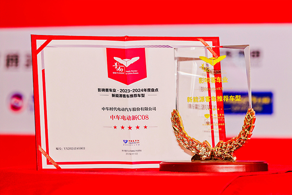 中車電動新C08榮獲2023-2024年度“新能源客車推薦車型”