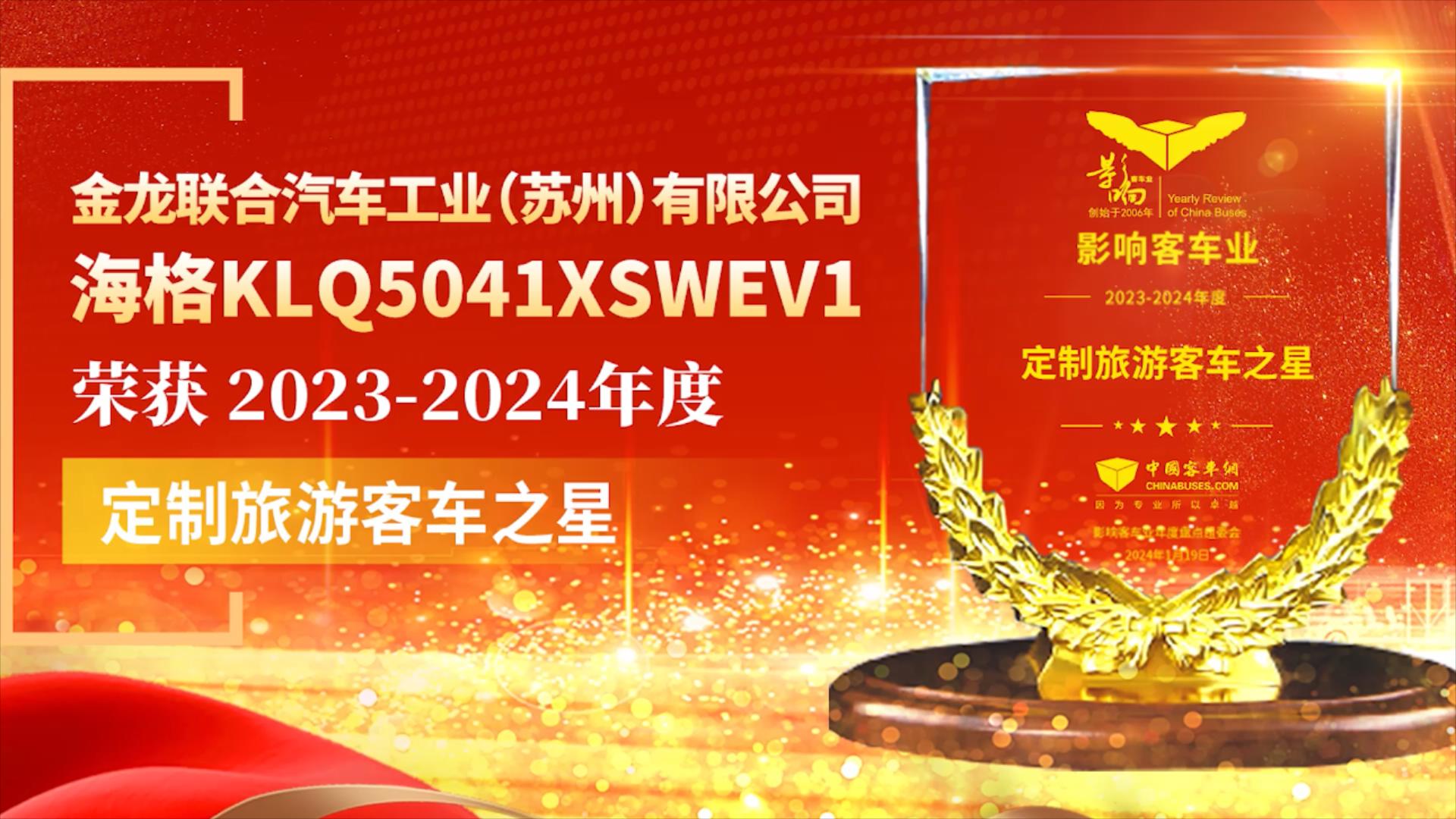 南京金龍NJL6117競途系列榮獲2023-2024年度“定制旅游客車之星”