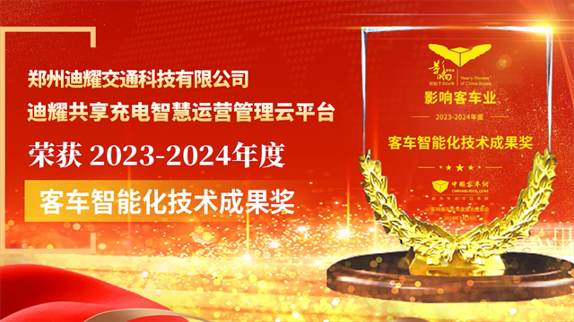 迪耀共享充電智慧運營管理云平臺榮獲2023-2024年度客車電驅動技術成果獎