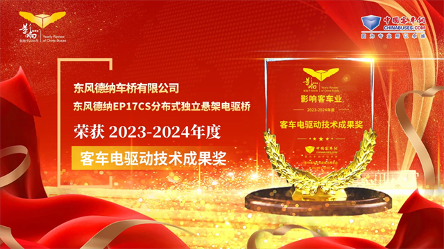 東風德納EP17CS分布式獨立懸架電驅橋榮獲2023-2024年度客車電驅動技術成果獎