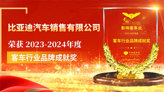 比亞迪汽車銷售有限公司榮獲2023-2024年度“客車行業(yè)品牌成就獎”